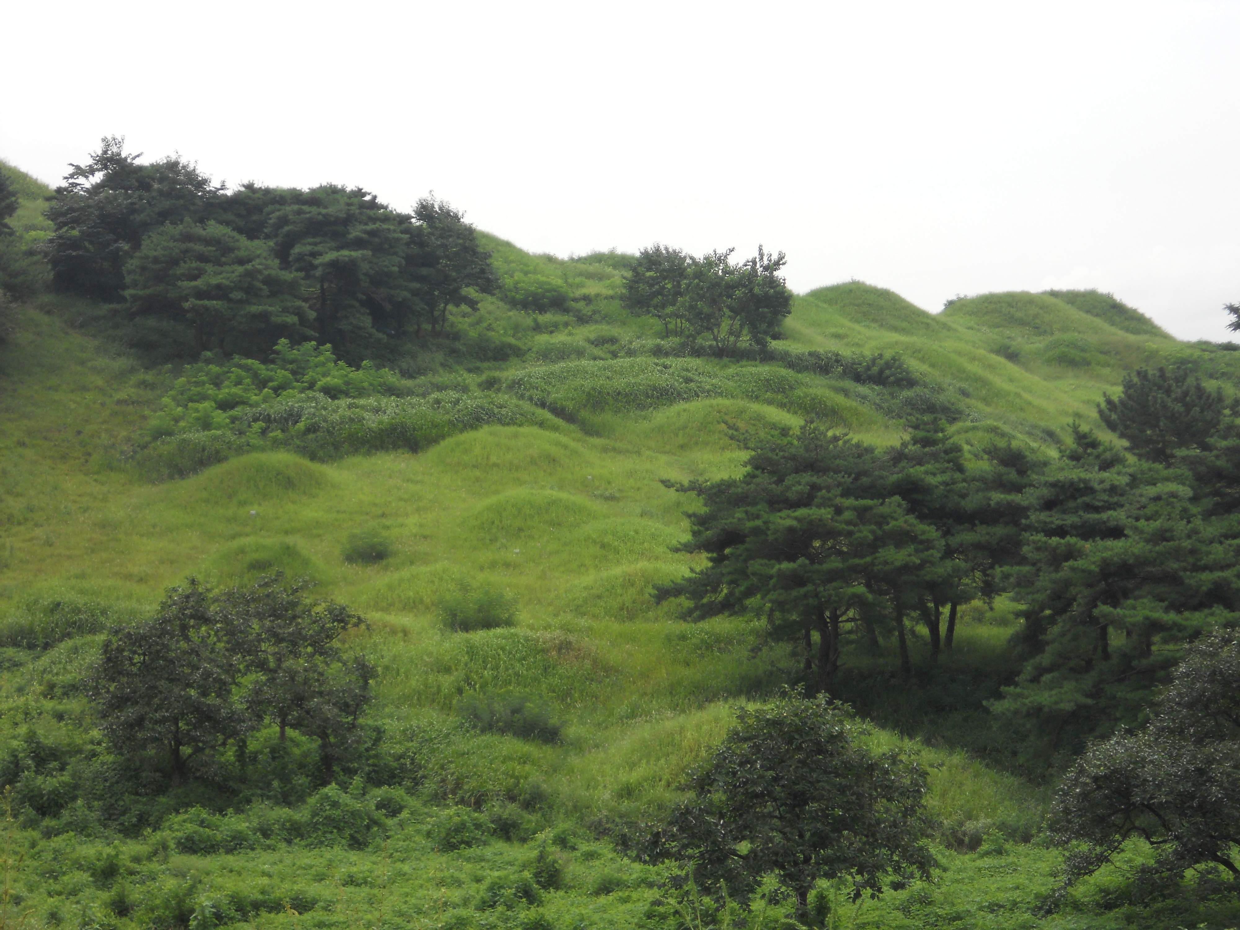 Turns out, the “lolling” part, literally mounds of hillside maybe 12-15 feet high, are family burial plots of powerful people who ruled during the 5th and 6th centuries. I wasn’t counting, but I saw the #20 on one of them – it could have been more. In their well-chosen, acreage on the hill they still ruled. Of course, there was probably not a city below as there is now, but it did make me wonder, what was there and how many people were a part of it? Also, did they mean for the Korean military to use this land as a training facility? Because right out there on this little hike were, say 10-12 soldiers setting up tents, laying down wire, you know, army stuff- all in full gear, rifles included. At first, they smiled and said “hello, how are you, good vacation, good time” and those kinds of nice things. We asked to take pictures but they declined. No biggy.
