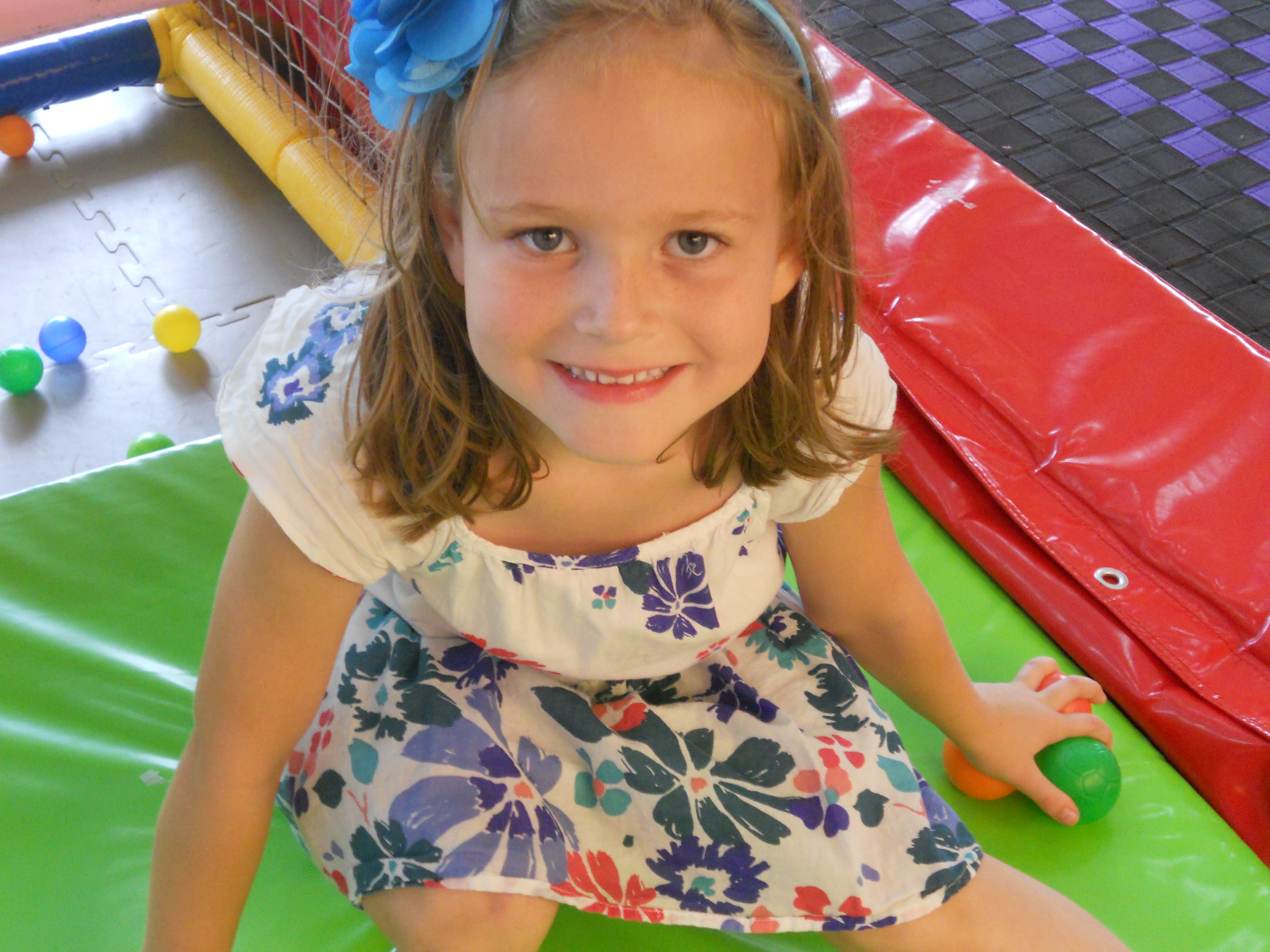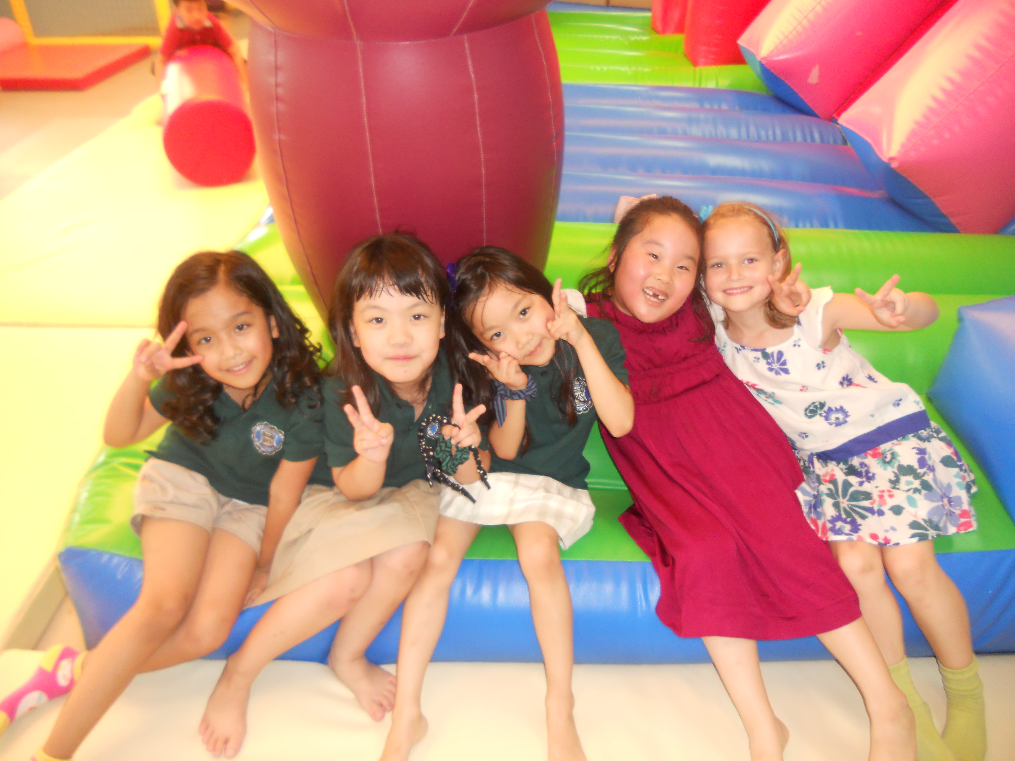 Hello to all of you in blogland. I won’t attempt to write in a style that compares to Vicki. She’s good…I’m a hack. So there I was stuck in TeddyBear Land on the 3rd floor of the nearby mall. The photos will give you an idea of how it’s was a deranged cross between Chuck E. Cheese’s and Romper Room. If you’re 6, I suppose it was several thousand square feet of padded, bouncy bliss. The moms smiled a lot and gestured for me to eat, sit, drink, etc. But I couldn’t shake that feeling of “what is he doing here?” That Sesame Street song kept playing in my head…”one of these things is not like the other…” Natalie, needless to say, did not have the same experience. She was completely at home running, jumping, laughing, and insisting that I take pictures of her and all her classmates. That (the photos) ended up being a nice ice-breaker with the moms. I’d go out amongst the screaming masses and report back to the um-mas with digital proof that a good time was being had by all. At one point, one of the moms said to me, “I think you are bored.” Not knowing what to say…I went and took more pictures. Pulling balloons off the ceiling for the kids also validated my reason for being at this party. What would the um-mas have done without me?