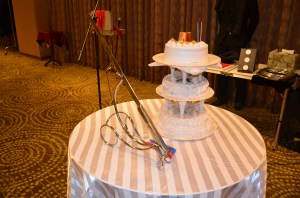 It was lavish. Opulent. Extravagant. Lush. The table displays were as nice, if not nicer, than the ones at our wedding. The buffet was bigger than my current classroom. On it was a salad station two tables long, 11 exotic fruits with a professional blender just in case you preferred a smoothie, fresh sushi, salmon, cod, chicken, roast beef, muscles, escargot, pad thai, bulgolgi, 6 different hot soups including pumpkin – yum!, an ice cream station with maple syrup and cereal for sundae toppings, 3 different kinds of brick oven pizza, sashimi, roasted vegetables, an entire array of Indian cuisine, and…AND…a cappuccino maker! I think they brought that for me. There was also an entire display (4 tables) of dessert, along with the actual birthday cake, which was cut, by the birthday girl, with a sword. A sword! So cool!