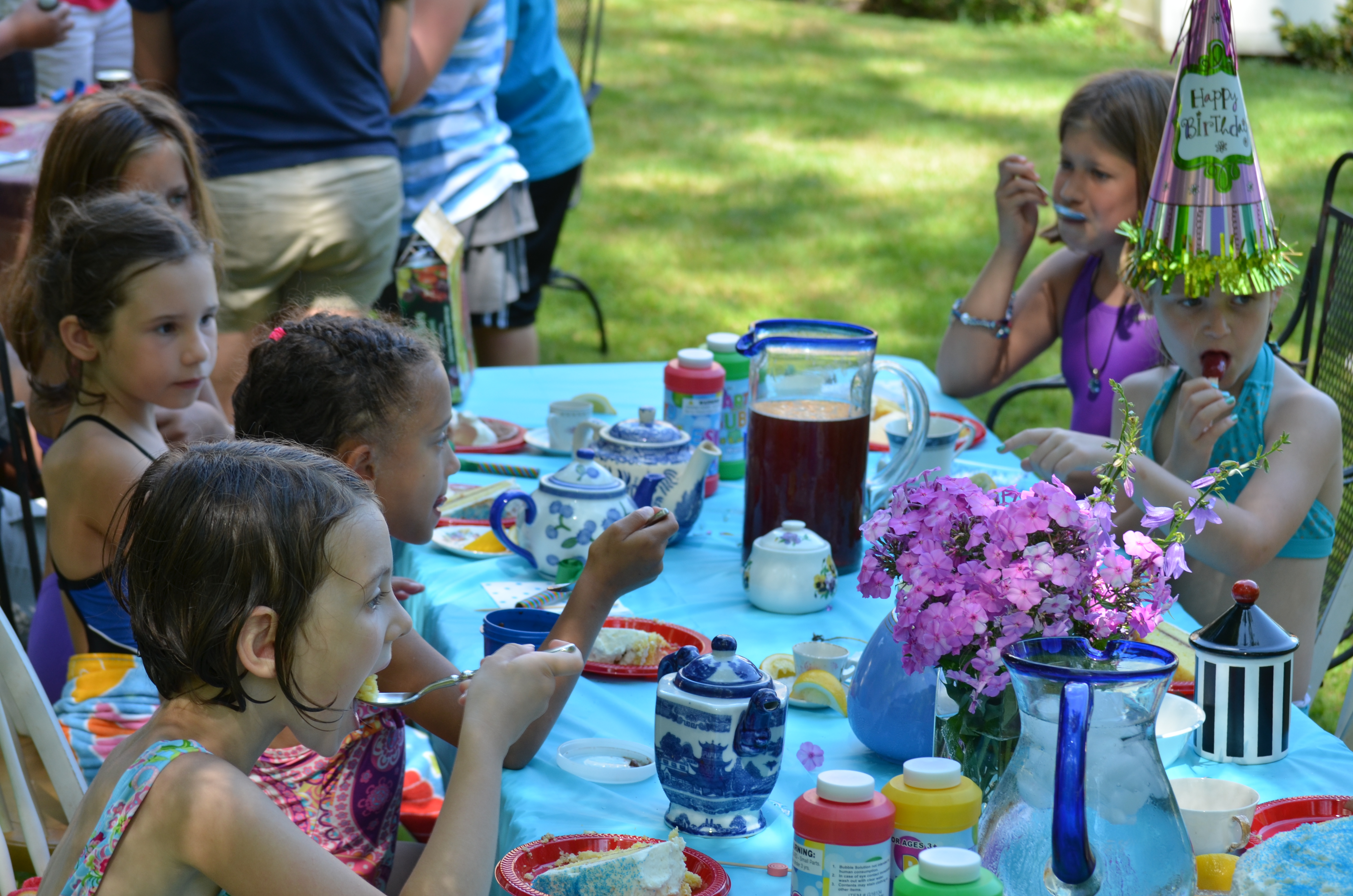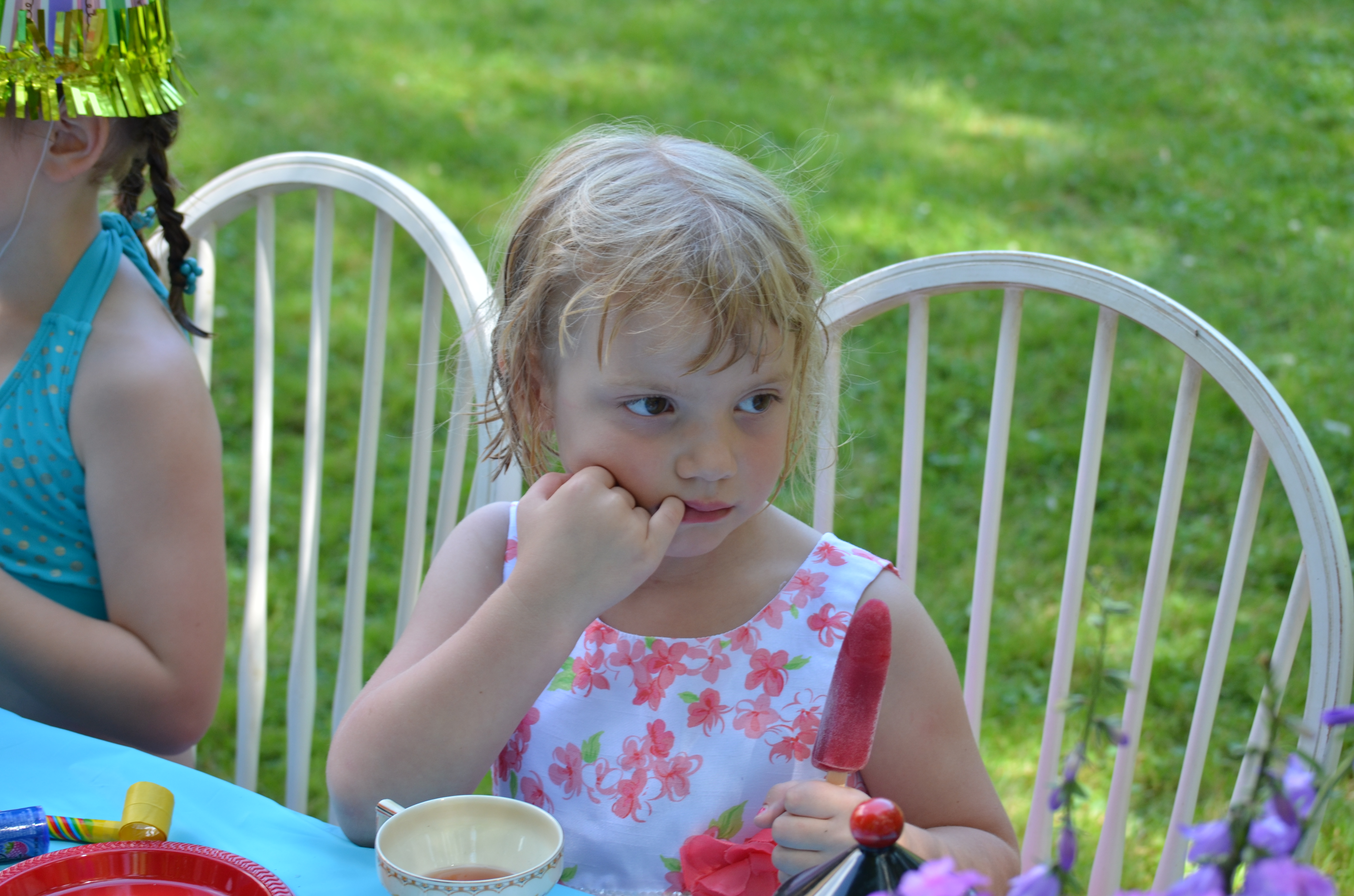 She wanted a tea party, a sprinkler and red popsicles. And that is what she got. With giant bottles of bubbles thrown in for good measure.