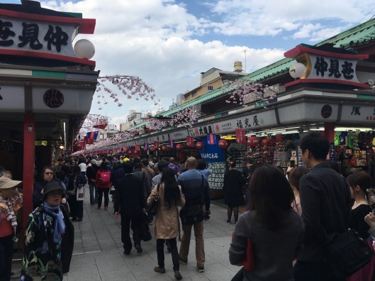 After the boat? Shopping. These pictures give you a feel for the crowds, the blue sky, the towering shrine above the street, and the beauty of our surroundings. Kids bought lots of gifts and memorabilia here.