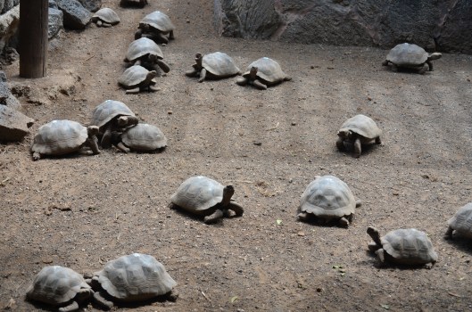 Back at sea level where it was sunny, and did I mention hot, we were taken to a giant tortoise breeding center, at which we saw — wait for it: Baby. Giant. Tortoises. BABIES! Would it be over the top to yell in all caps: OMG!? LOOK AT THEM! We sauntered around the property, greeting tortoises at every stage of development, and loved every second of it.
