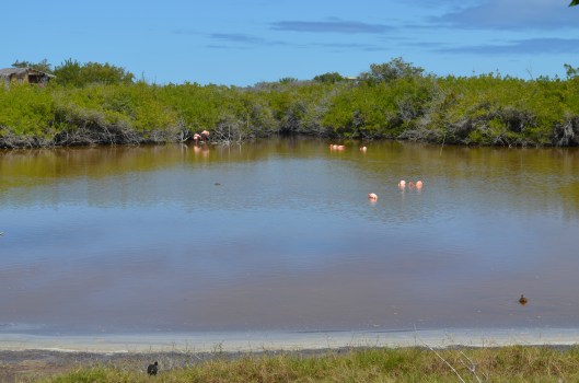 We stopped many times along the way to learn about this plant or that tiny animal, this tree or that view. And then, the denseness around us opened up into a peaceful pond, and in it were dozens of pink flamingoes, wading, fishing, hanging out with their buds. Well worth the hour long walk. Most of the flamingoes you see in this picture are fishing, their heads in the water. The ones far away on the left are standing full height. They are truly astounding creatures. I had no idea they were so magnificent.