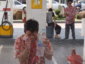 I didn’t know I’d get a chance to celebrate Songkran, the celebration of the Thai New Year that occurs mid-April — after only 4 1/2 months of trying to be a better person and all that other crap I’m always striving toward. I’d have just LIVED IT UP – eaten that raspberry cheesecake I saw at Costco – let that lady at the airport who cut us in line have it – had I only known I’d soon be able to wipe the slate clean. Again.