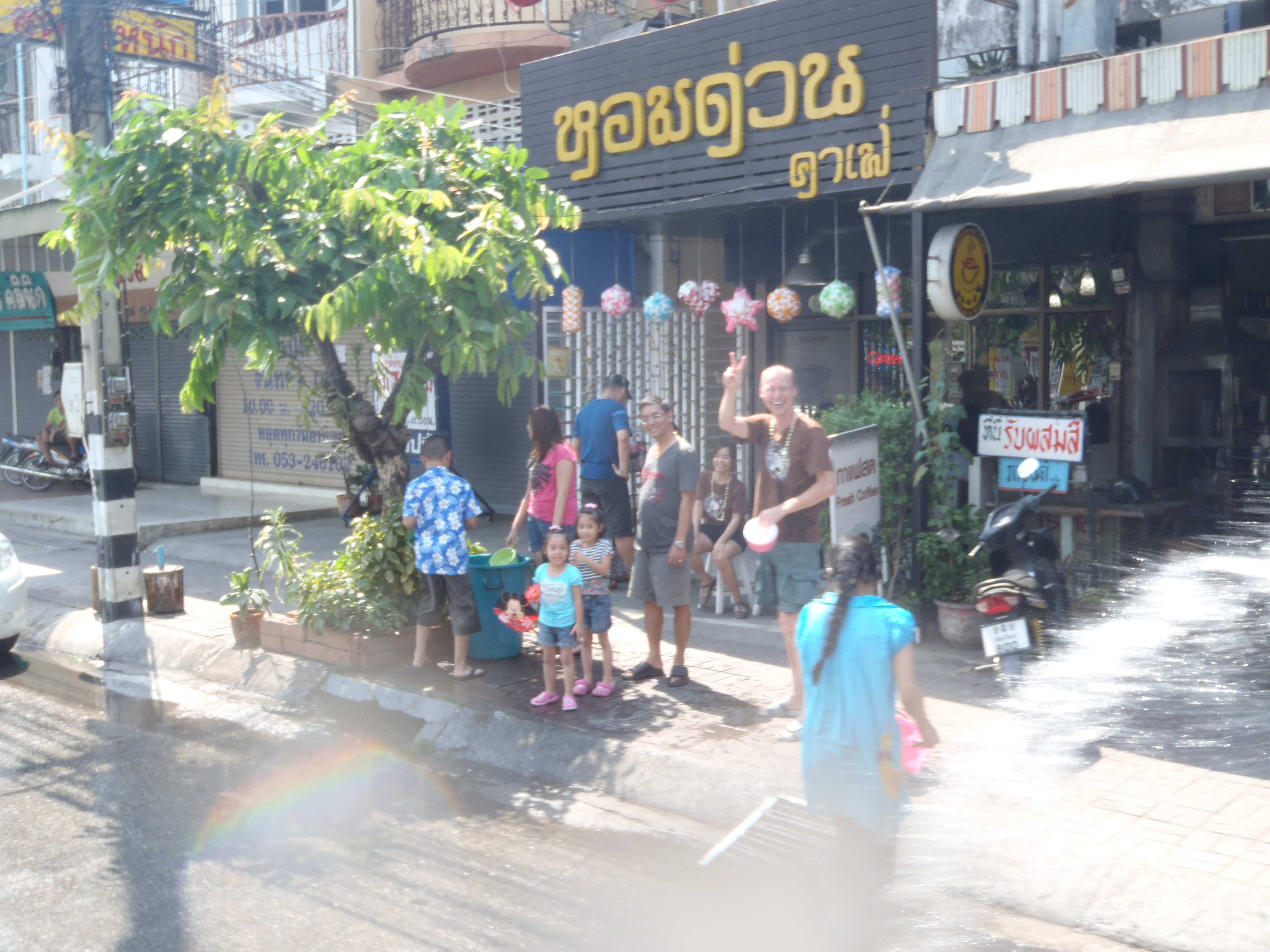 So, I went to Songkran, a highlight among highlights in Chiang Mai. We rented a truck loaded up with 3 huge barrels of water, and set about helping all the people of the city wipe their repentive slates clean. After hundreds of buckets of ice cold water were thrown at my head — by laughing strangers on the side of the road, in drive-by shootings from unassuming old ladies on putt-putt scooters with gigantic squirt guns, by small children, by a truckload full of men in black…even by the guy that filled our gas tank who just threw the water he was drinking at us, I did feel – if not cleansed, then definitely – refreshed.